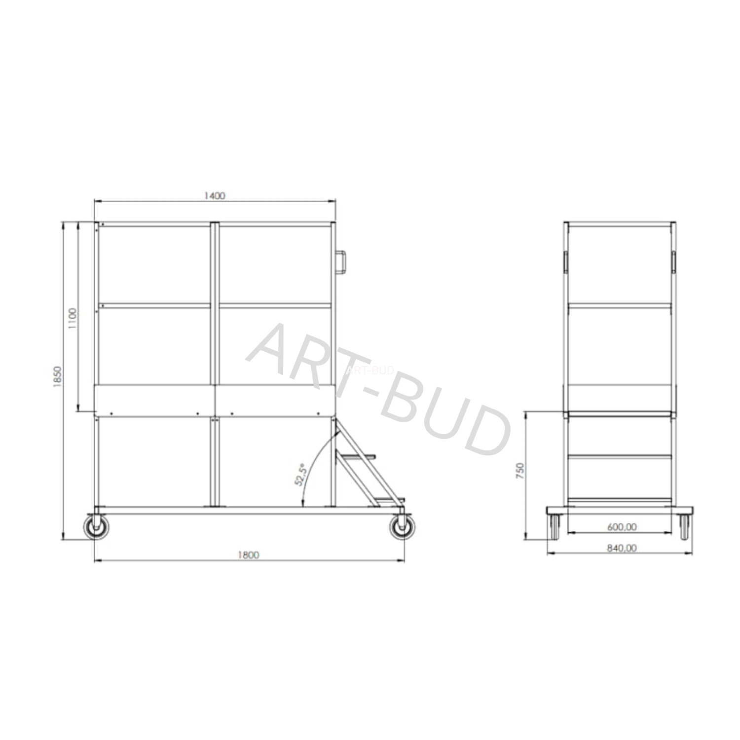 Podest jezdny, platforma jezdna, drabina 2+1 0,75m LONG 1400mm