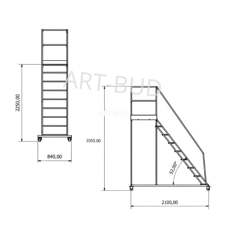 - Ilość stopni: 8+ podest