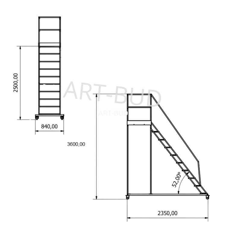 Podest jezdny drabina jezdna 9+1 2.5m Aluminiowa