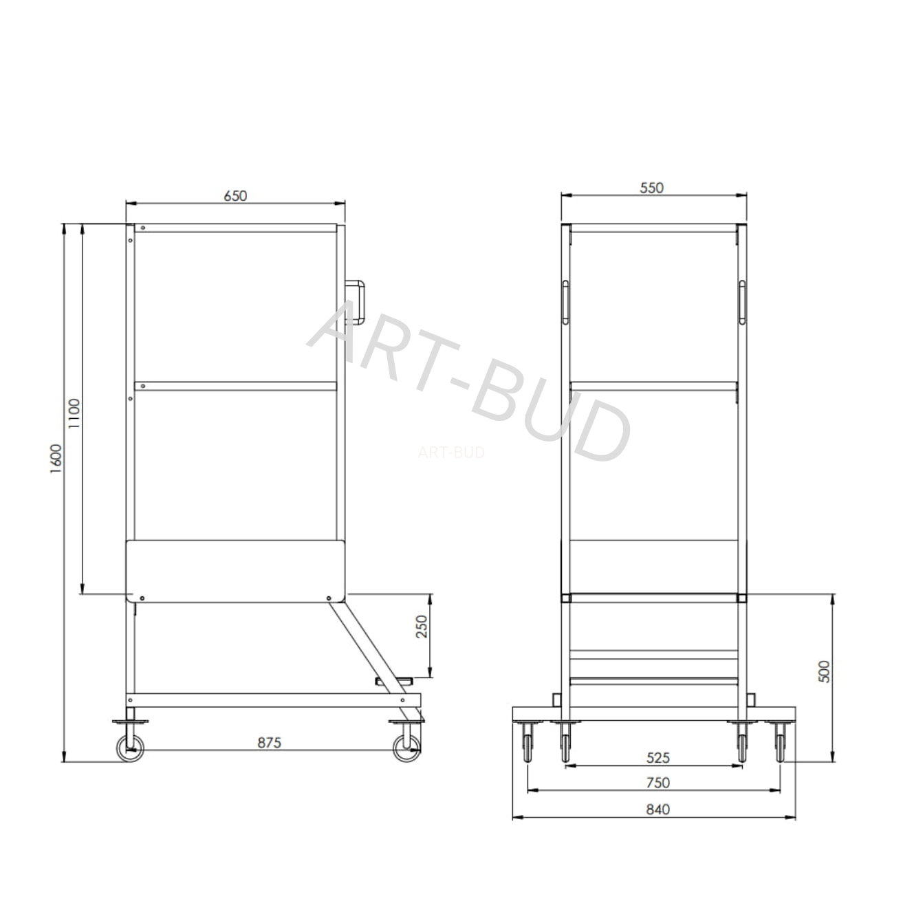 - Wymiar wózka: 875 x 840 mm
