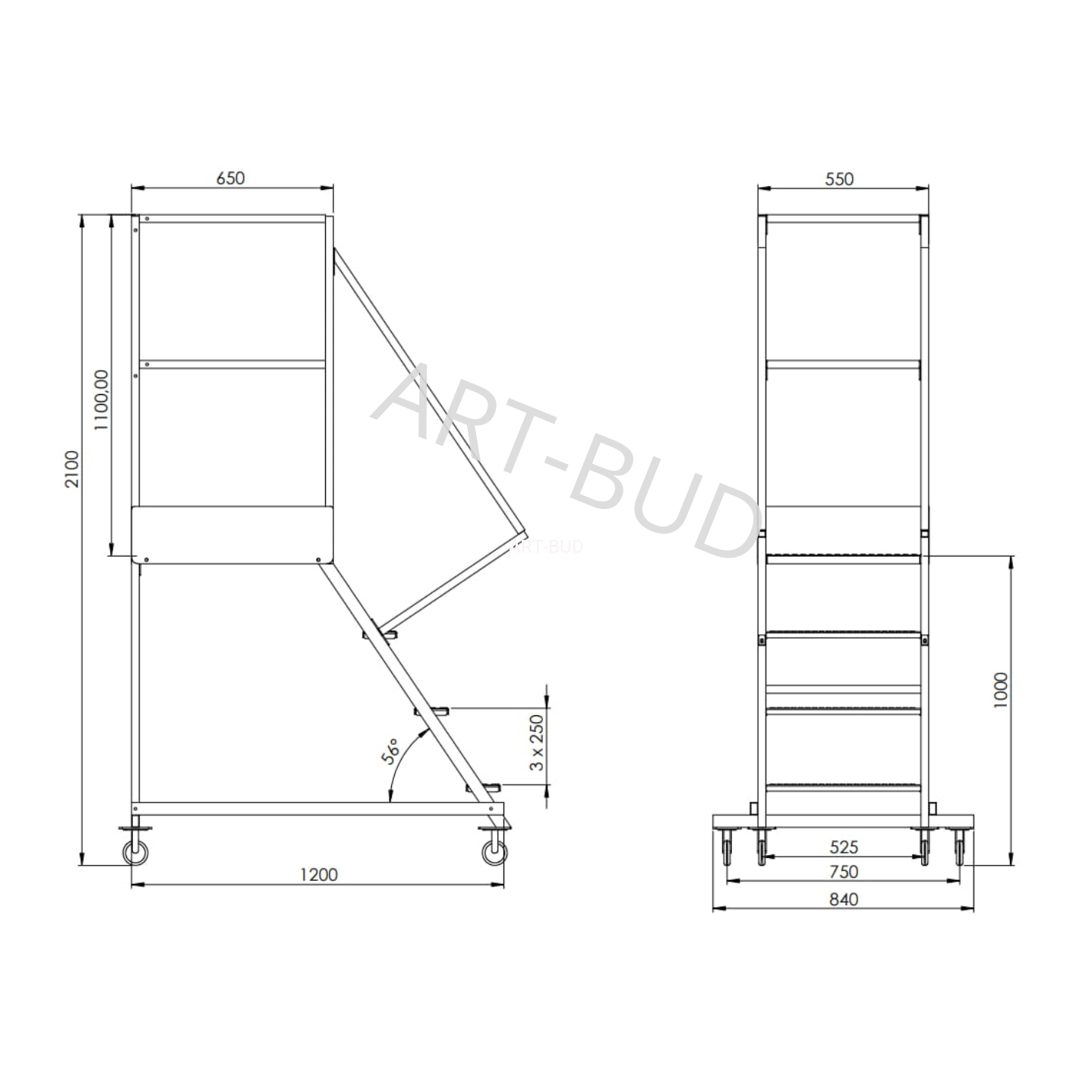 - Wymiar podestu: 550 x 650 mm