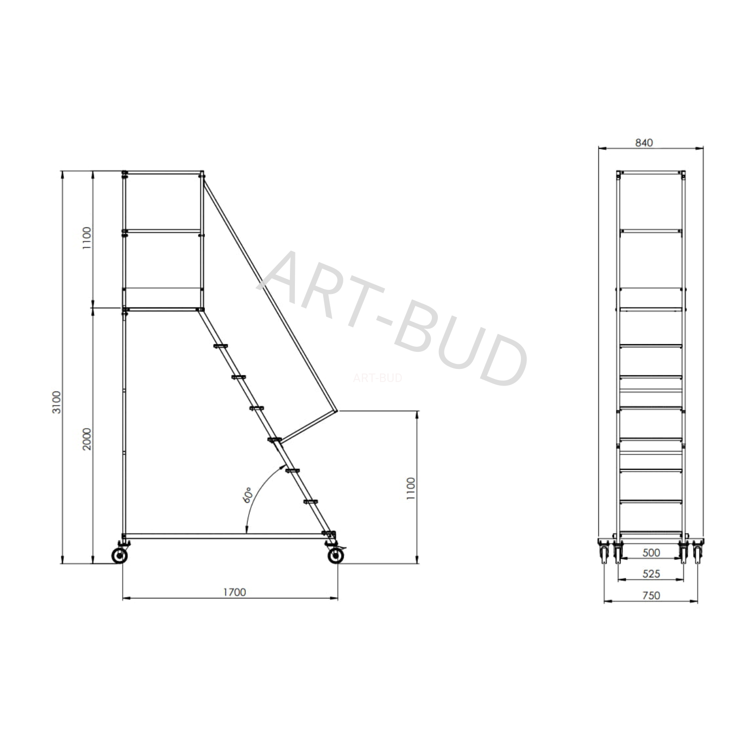 Podest jezdny light, drabina jezdna, 7+1 light 2m