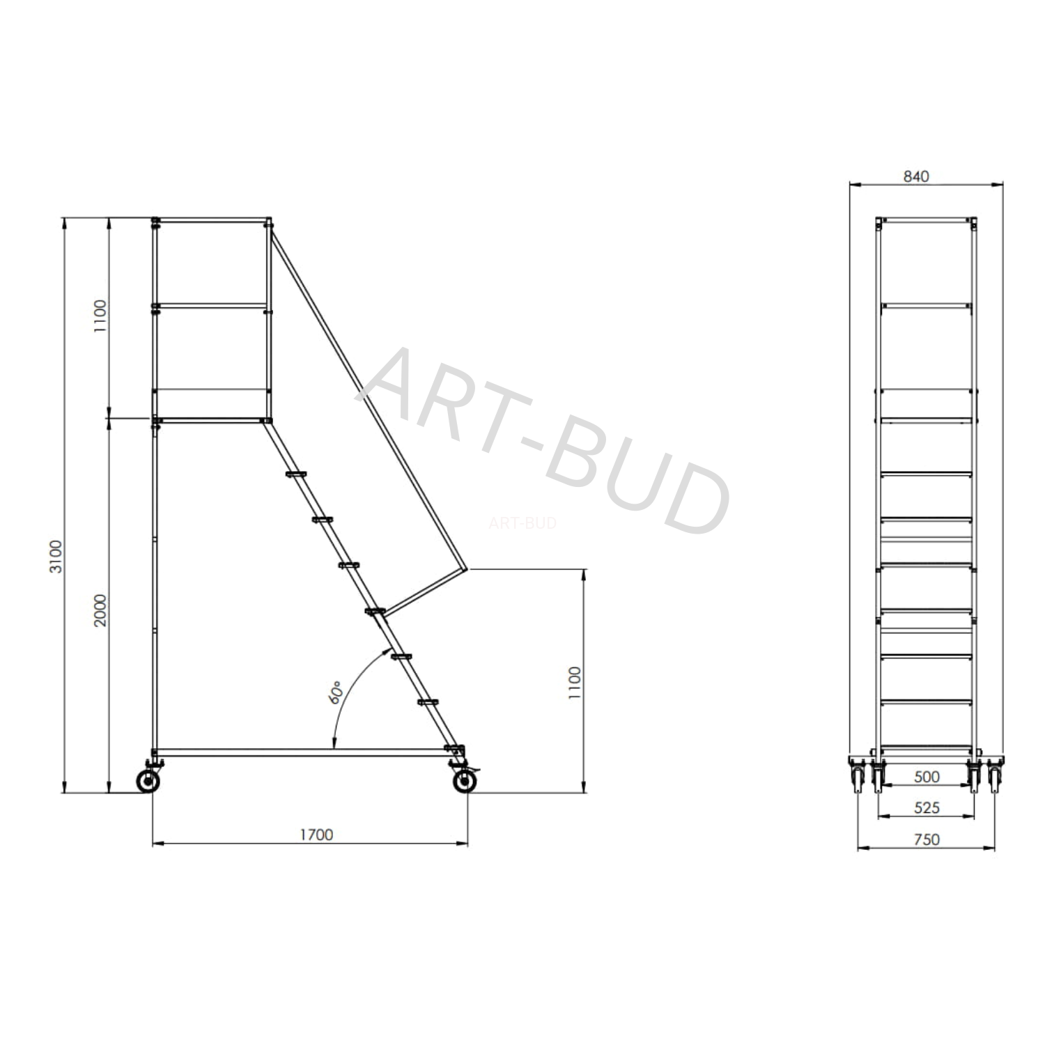 Podest jezdny light drabina jezdna 6+1 light 1.75m
