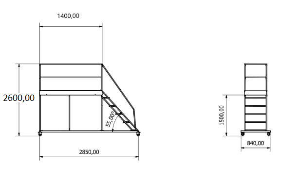 Podest jezdny platforma jezdna drabina 5+1 1.5m LONG