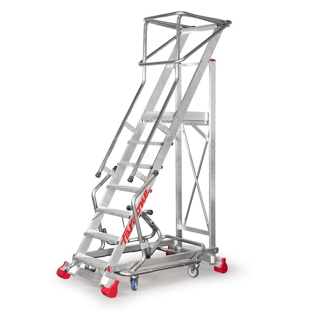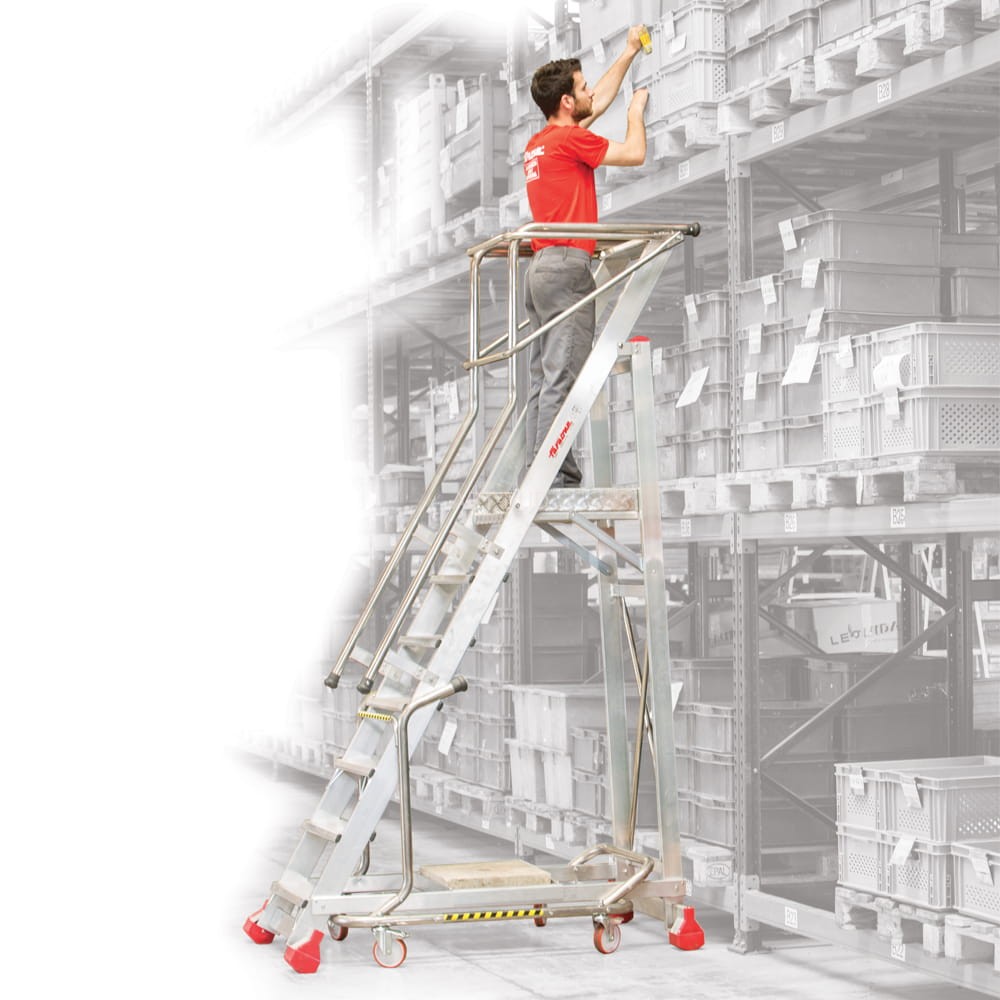 Drabina magazynowa Faraone z serii MFTS to urządzenie przeznaczone do profesjonalnych prac w magazynach i składach o wysokości prawie do 5,5 m . Wysoka jakość wykonania pozwoliła jej uzyskać wszystkie europejskie normy i wymogi bezpieczeństwa. Drabina magazynowa MFTS standardowo wyposażona jest w system zabezpieczeń minimum 20 kg i maksymalnie 100 Kg