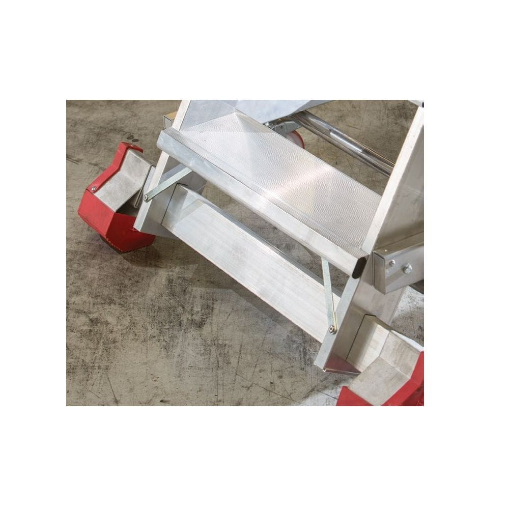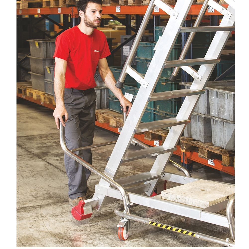 Mobilny podest, łatwy w przemieszczaniu za pomocą zestawu SICUR STOP, który umożliwia przemieszczanie podestu na 4 kółkach.