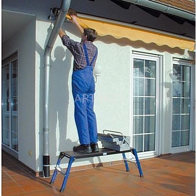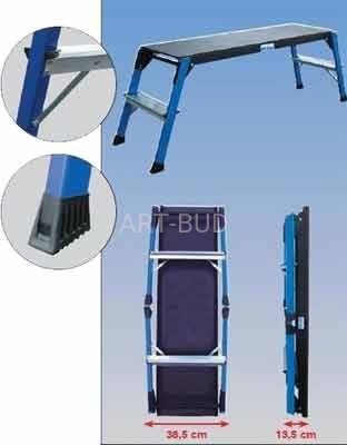 Składany, stabilny aluminiowy podest roboczy, idealny do prac wymagających większej platformy do stania. Praktyczny podest roboczy z wodoodporną i  antypoślizgową powłoką na bazie żywicy fenolowej  anoszonej sitodrukowo.