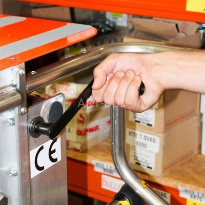 CL Urządzenie dostarczane jest w drewnianej skrzyni Platforma typu picking do pracy na wysokości do 4 m i automatycznym podnoszeniem, zasilana akumulatorem 24 V.