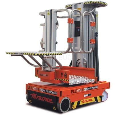 Najnowoczesniejszy produkt firmy Faranone. wielofunkcyjny, uniwersalny podnośnik samojezdny o niezwykłej precyzji, bezpieczeństwie i funkcjonalności. Zwyżki mobilne seria ELEVAH do zastosowania przy wszelkich naprawach, myciu/czyszczeniu, konserwacjach, pracach instalacyjnych i montażowych.ELEVAH® 65 MP to platforma typu picking jedyna w swoim rodzaju, ponieważ osiąga wysokość roboczą 6,50 m, pozwalając na pobieranie materiałów o maksymalnym ciężarze do 100 kg, maksymalnie wykorzystując wysokość magazynu i optymalizując koszty. Niewielki ciężar, minimalne gabaryty i niewiarygodna zwrotność umożliwiają łatwe poruszanie się tymi maszynami nawet w ograniczonych przestrzeniach.Niezastąpiony przy pracy polegającej na pobieraniu towarów w magazynach lub supermarketach.