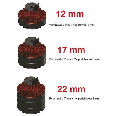 Istnieje możliwość dodatkowego zakupu art. 240-215-150-005 (podstawka 5 mm - guma), dzięki czemu można uzyskać wysokości 12 mm, 17 mm, 22 mm.