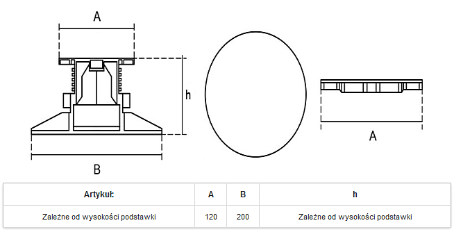 DOSTĘPNE PODSTAWKI STANDARDOWE UNIWERSALNE ᴓ 200 mm: