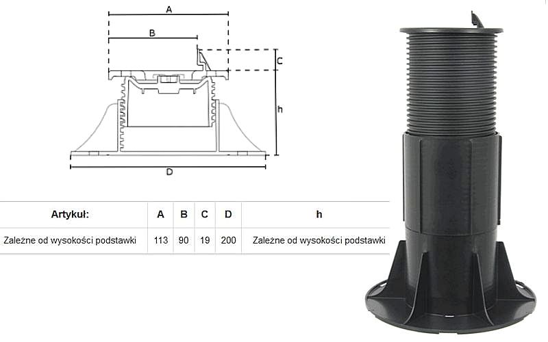 Podstawki standard Plus o regulowanej wysokości od 22 mm do 550 mm pod legary