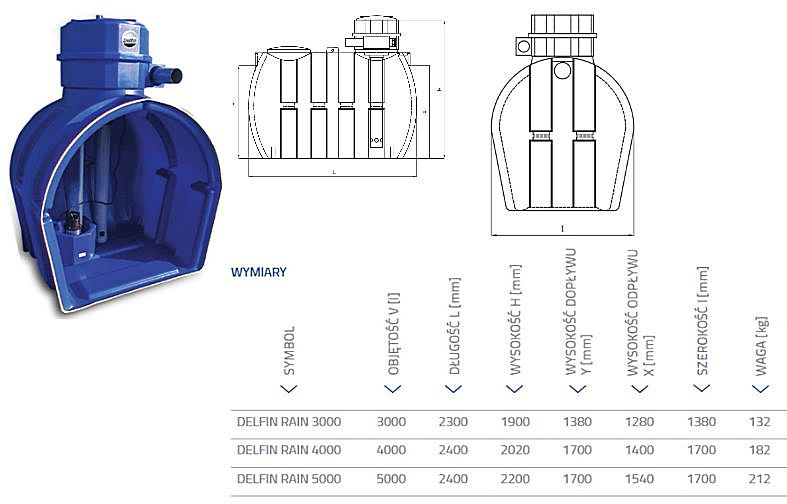Podziemny zbiornik na wodę deszczową bez pompy 3000 - 5000 l Delfin RAIN