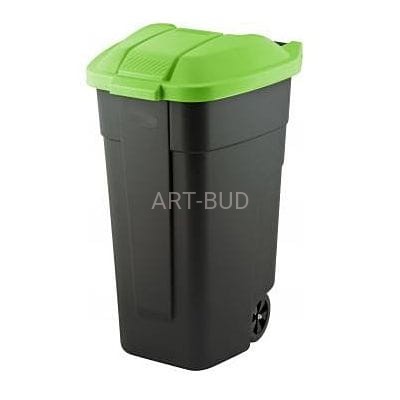 Pojemnik na odpady 110L czarny z zieloną pokrywą na kółkach