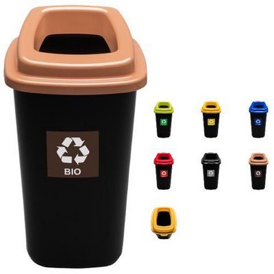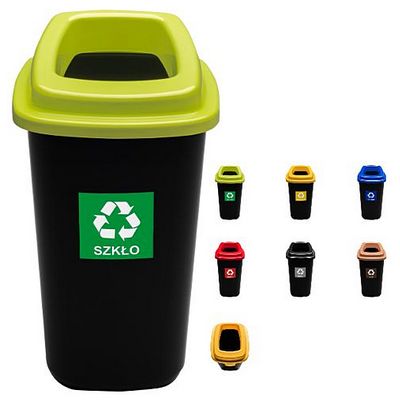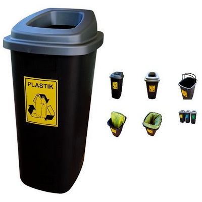 Kosz bardzo wysokiej jakości, estetyczny w czarnym kolorze z kontrastowymi pokrywami i nalepkami ułatwiającymi segregację odpadów. Pojemnik na odpady oferowany w trzech wersjach: BIO, SELEKT i SELEKT MAX która posiada pojemność 90 litrów, dwa razy więcej niż dwie pierwsze wersje. Szeroki wybór kolorów klap i nalepek pozwala na łatwe dostosowanie do konkretnych potrzeb. Pojemniki na odpady znajdują zastosowanie do segregacji odpadów wewnątrz budynków, a w przypadku SELEKT MAX o pojemności 90L, również na zewnątrz budynków.