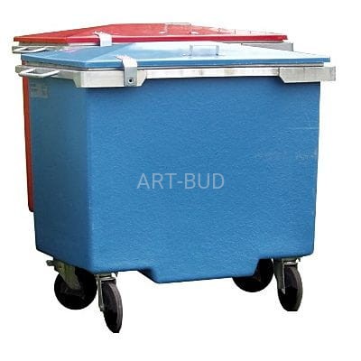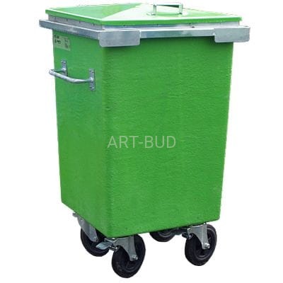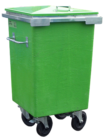 Niezwykle mocny o solidnej konstrucji pojemnik z żywic poliestrowych wzmacnianych włóknem szklanym, barwionym żelkotami w dowolnych kolorach. Jest to pojemnik mobilny na 4 kołach jezdnych posiadający 2 hamulce. Wzmocniony metalową ramą z uchwytami i zawiasami . Dostępny w wersji z klapą płaską lub przystosowana do segregacji odpadów. Pojemnik na odpady został wykonany bardzo estetycznie i jest niezwykle funkcjonalny. Pojemność pojemników od 300-1000 litrów.