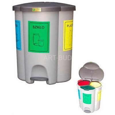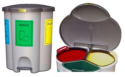 Nowy pomysł na praktyczną, funkcjonalną segregację mniejszych ilości śmieci. Niewielki trzykomorowy pojemnik do segregacji śmieci wewnątrz pomieszczeń. Jedna klapa uruchamiana pedałem nożnym, otwiera trzy zespolone, różnokolorowe pojemniki na śmiecie. Dwa o pojemności 17 litrów każdy i jeden 6 litrowy. Dwa większe pojemniki posiadają obejmy na worki.