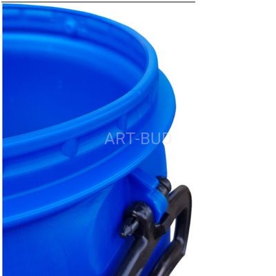 Szczelny pojemnik polietylenowy zamykany pokrywą z metalową opaską zaciskową, przeznaczony szczególnie na odpady emitujące zapachy lub pyliste.