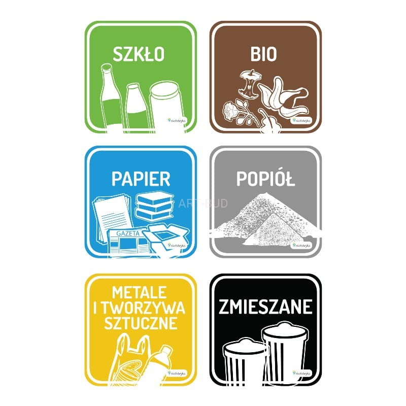 Do stacji załączone są naklejki z piktogramami oraz nazwami frakcji odpadów w języku polskim i angielskim. Naklejki na stację należy przykleić samemu.