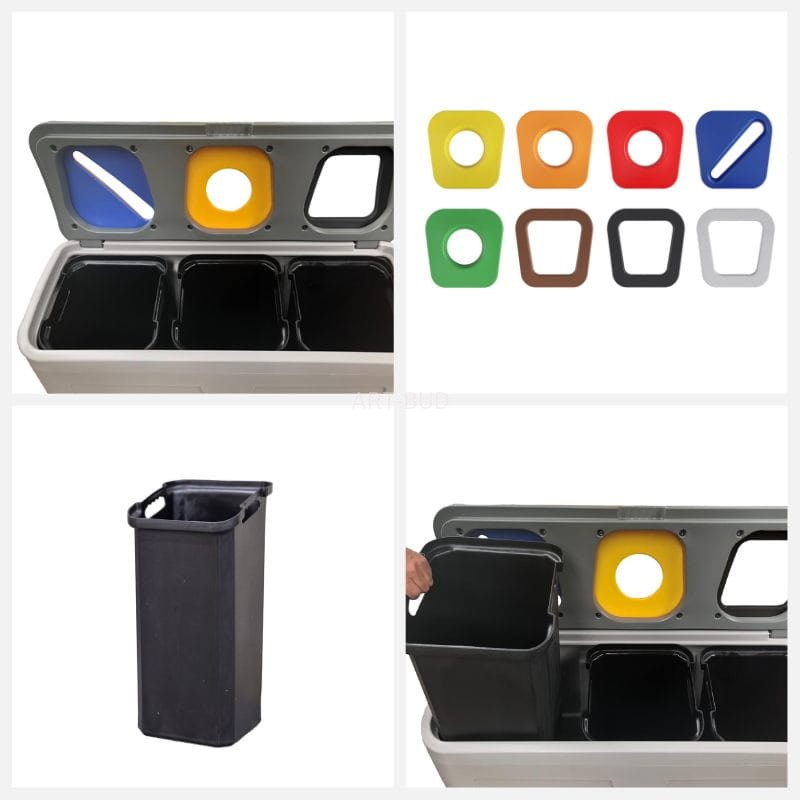 Do wyboru mamy otwory wrzutowe w ośmiu kolorach, kształtem dopasowane do rodzaju segregowanego odpadu. Dostępne warianty kolorystyczne i ich przeznaczenie: