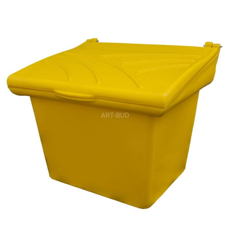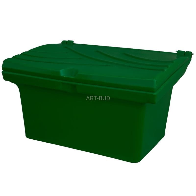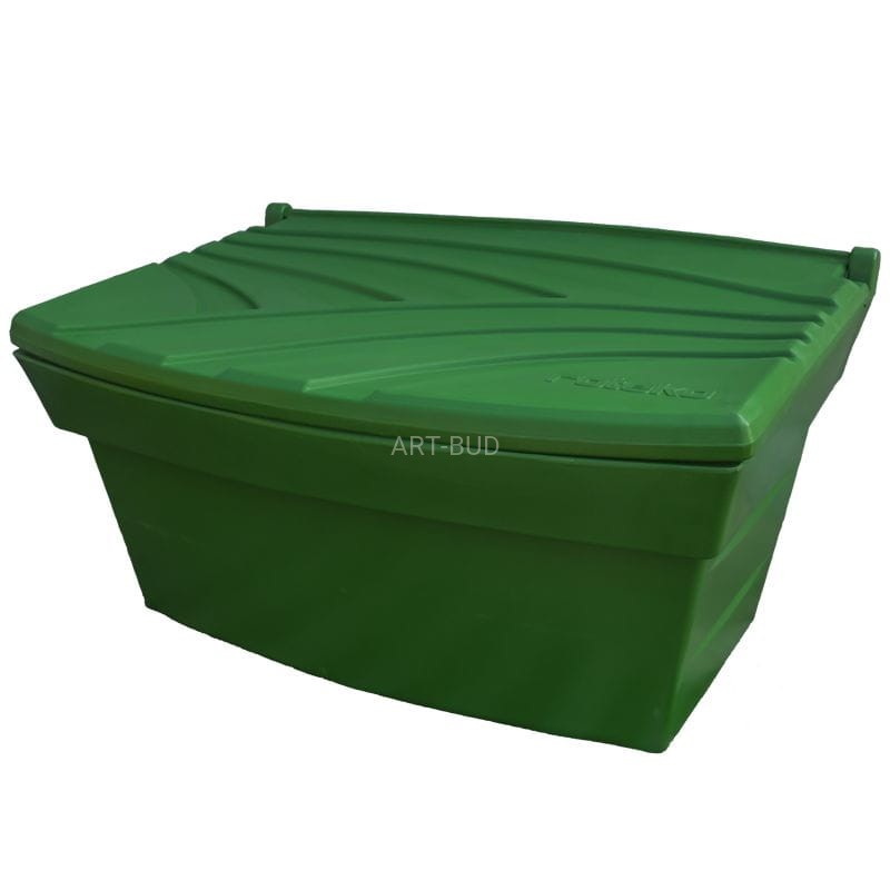 Praktyczny pojemnik o wysokiej jakości i estetyce ze szczelną pokrywą. Może służyć jako pojemnik na piasek i sól w okresie zimowym, zarówno w gospodarce komunalnej jak i prywatnych posesjach, albo praktyczny schowek szczelnie zabezpieczony przed warunkami atmosferycznymi. Pojemnik na piach i sól wykonany jest z polietylenu. Skrzynia posiada wysoką odporność na wszelkie warunki atmosferyczne a tym bardziej na szkodliwe działania promieni UV. Kolory pozostają żywe a powierzchnia lśniąca przez cały okres użytkowania.