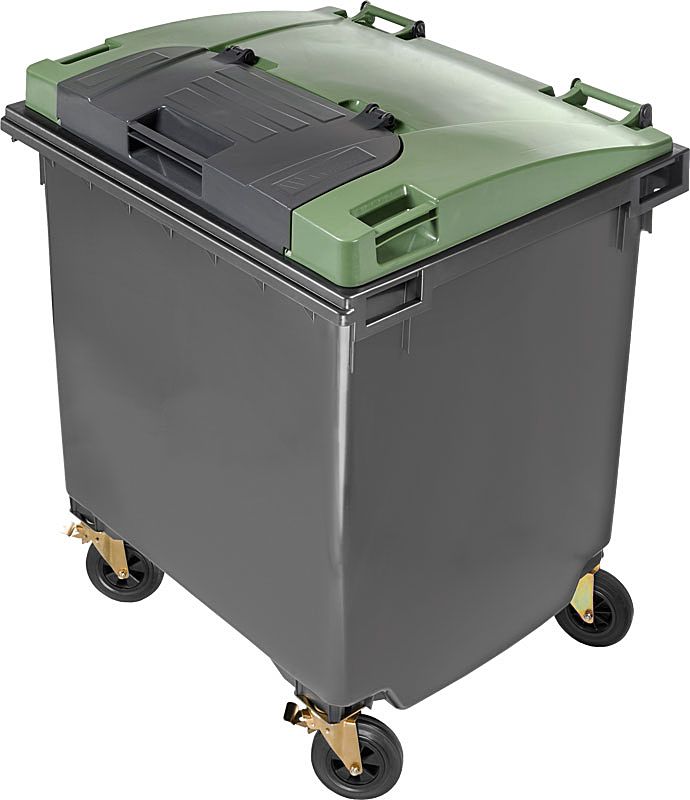 Ruchome pojemniki plastikowe na śmieci 4-kołowe o pojemności 1100 L "lid in lid"