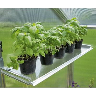 Uniwersalna konstrukcja na bazie profili aluminium dedykowana do szklarni ogrodowych. Blat roboczy z płyty poliwęglanowej. Mocowana śrubami do konstrukcji, stabilna, trwała, łatwa w montażu. Pozwala na pełniejsze zagospodarowanie przestrzeni wewnętrznej szklarni i uzyskanie dodatkowych efektów wizualnych i funkcjonalnych.