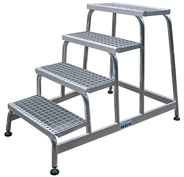 Pomost montażowy z kraty posiada dużą platformę górną o wymiarach 520mm x 305mm. Wszystkie stopnie wraz z platformą górną wykonane są z kraty aluminiowej o ząbkowanej powierzchni, co zapewnia bezpieczeństwo podczas pracy. Stopnie z kraty aluminiowej spełniają najwyższe wymogi grupy R13 według normy BGR 181 w zakresie zabezpieczenia przed poślizgiem. Stopnie są o głębokości 240mm, przednie krawędzie stopni są antypoślizgowe co gwarantuje swobodne wchodzenie i schodzenie z pomostu montażowego. Stabilna konstrukcja pomostu montażowego wykonana jest z rur spawanych, natomiast zakończenia rur wyposażone są w antypoślizgowe stopki. Cała konstrukcja gwarantuje bezpieczną codzienną pracę.