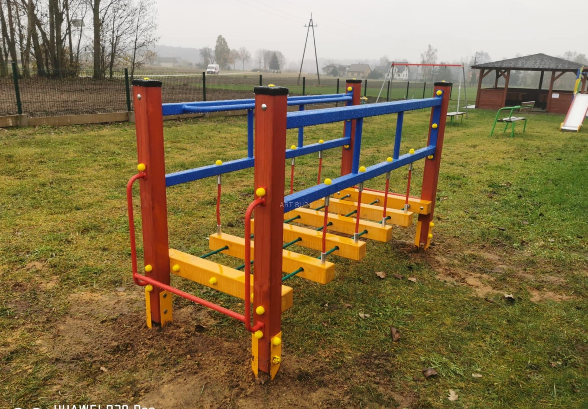 Elementy nośne urządzenia wykonane są z drewna sosnowego, toczonego cylindrycznie z rdzeniem