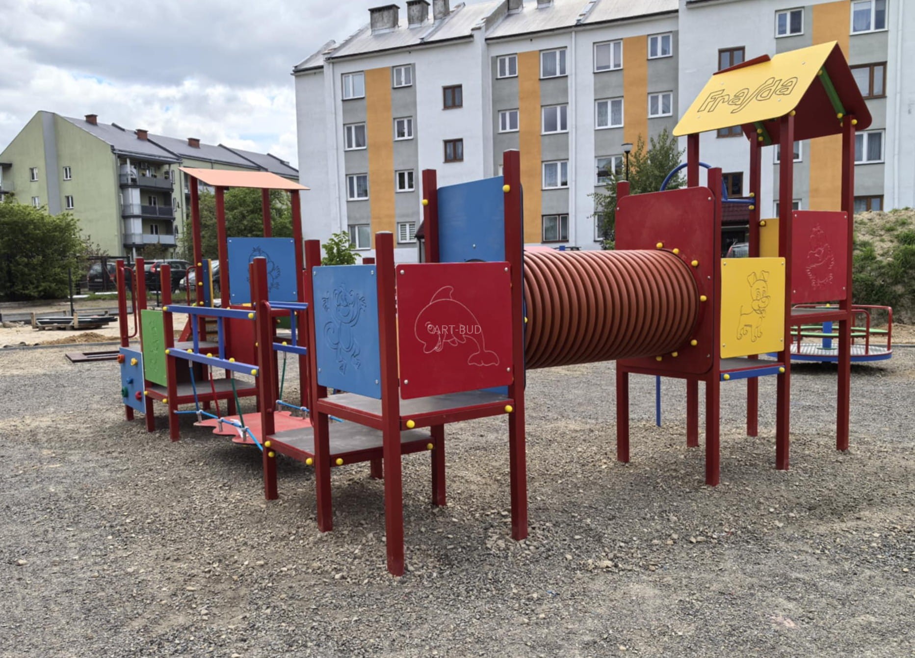 a ich końce zabezpieczone plastikowymi kapslami, dzięki czemu zapewnia bezpieczeństwo bawiących się dzieci.