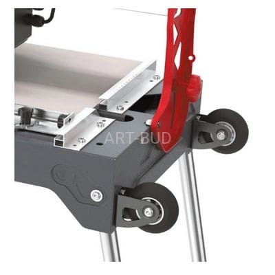 Przecinarka została zaopatrzona w kółka oraz uchwyt, dzięki którym łatwiej przestawiać i transportować sprzęt