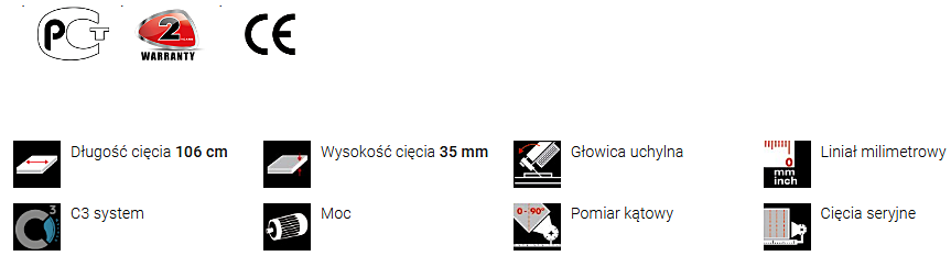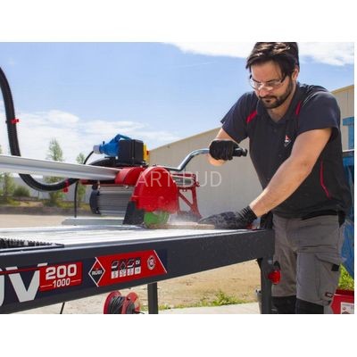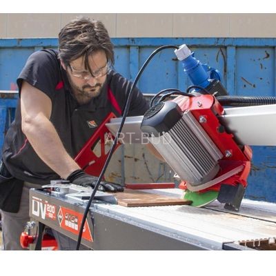 Przecinarka elektryczna RUBI DV-200 1000 do cięć prostych i pod kątem z przesuwną głowicą oferuje użytkownikowi maksimum funkcjonalności i niezawodności.DV-200 1000 idealnie nadaje się do intensywnych cięć płytek ceramicznych i kamionki glazurowanej, jak również do cięcia płytek gresowych porcelanowych oraz okazjonalnie płytek kamiennych.Zespół silnika w przecinarce DV-200 1000 przesuwany po prowadnicy z wykorzystaniem łożysk oferuje maksymalną precyzję i jakość cięcia, jak również możliwość cięć pod kątem elementów o długości do 106 cm.Demontowalne aluminiowe blaty ułatwiają czyszczenie i konserwację przecinarki elektrycznej DV-200 1000, a system składania nóg z wbudowanymi kółkami ułatwiają transport urządzenia. Przecinarka DV-200 1000 wyposażona jest w SYSTEM C3, pozwalający na regulację punktu chłodzenia i oczyszczania tarczy wodą zgodnie z preferencjami użytkownika, znacząco poprawiając wydajność tarcz diamentowych. DV-200 1000 zawiera tarczę diamentową CEV PRO 200 mm. Obrzeże ciągłe tarczy zapewnia wykonywanie cięć we wszystkich materiałach ceramicznych z najlepszą jakością i dobrą wydajnością.