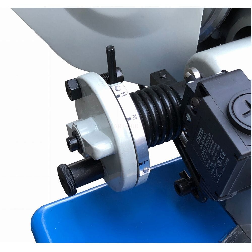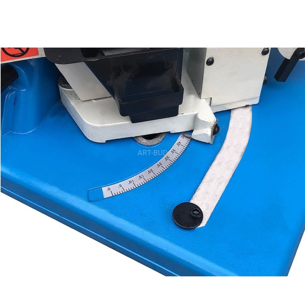 Przecinarka posiada obrotowe ramię w zakresie 0°-45 ° co znacząco ułatwia cięcie materiału pod kątem. Mimo niewielkich gabarytów maszyna jest bardzo stabilna i nie wpada w wibracje podczas cięcia większych materiałów.