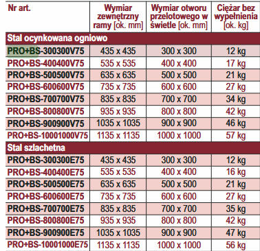 Przeciwpożarowa pokrywa włazu systemu PRO+BS wys. 75mm