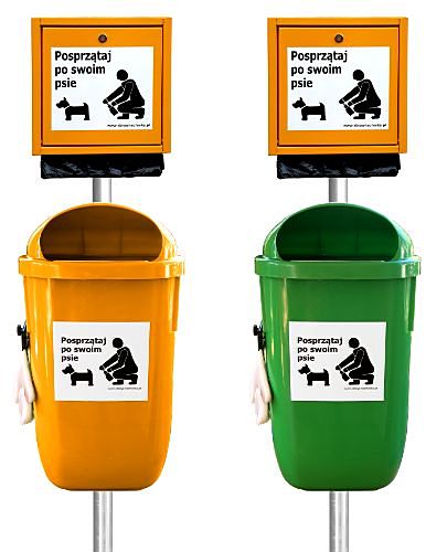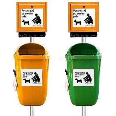 Kosz na psie odchody z kompleksowym opcjonalnym doposażeniem w formie pojemników na rękawice i woreczki jednorazowe. Zestaw do zastosowania wszędzie tam, gdzie tereny zielone w przestrzeni zurbanizowanej są intensywnie użytkowane przez ludzi i niestety również przez ich czworonożnych ulubieńców. Wzrost jakości życia wymusza powszechne stosowanie podstawowych standardów cywilizacyjnych w ochronie naturalnego środowiska, a w tym przede wszystkim bezpośredniego otoczenia miejsca zamieszkania. W środowisku wielkomiejskim, presja na stosunkowo ograniczone tereny zielone, ze strony ludzi i ich zwierząt jest ogromna. Szacunek dla tego środowiska, a przede wszystkim wobec wszystkich innych jego współużytkowników, wymusza stosowanie norm, które są w stanie ochronić interes nas wszystkich. Kosze na psie odchody, podobnie jak publiczne kosze na śmieci, to dziś powszechny obowiązek gospodarzy i zarządców terenu, a zarazem wskaźnik ich poziomu kulturowo-cywilizacyjnego.