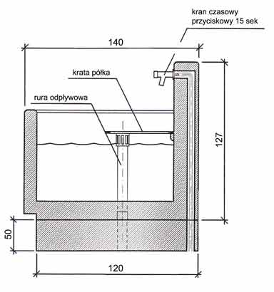 Punkt czerpania wody Typ A- kwadratowy zespolony zaopatrzony w zawory z czasowym wypływem wody na 15 sekund lub ich wielokrotność, co umożliwia wygodny i prosty pobór wody.