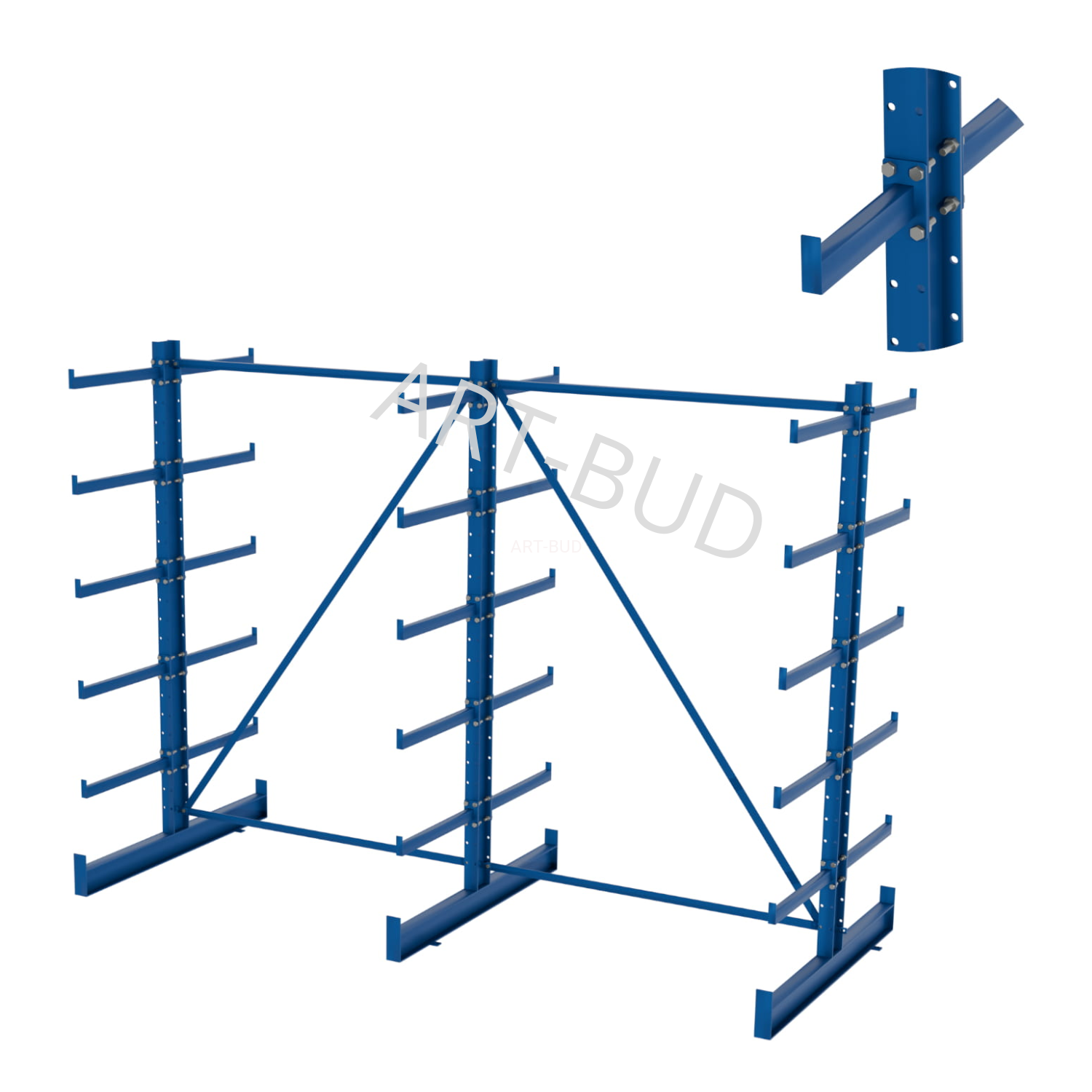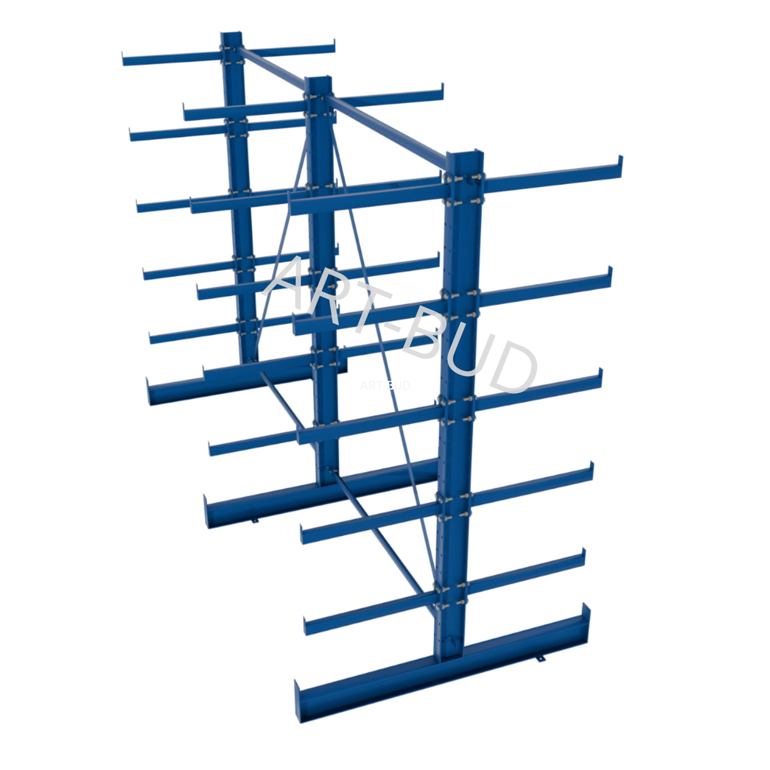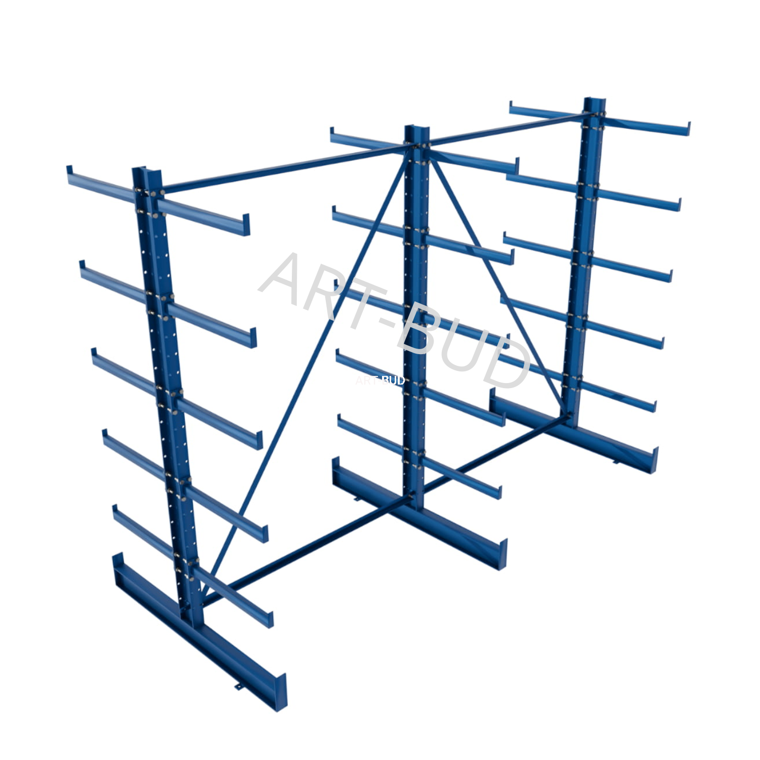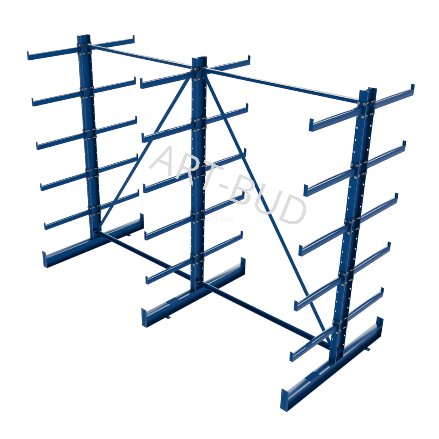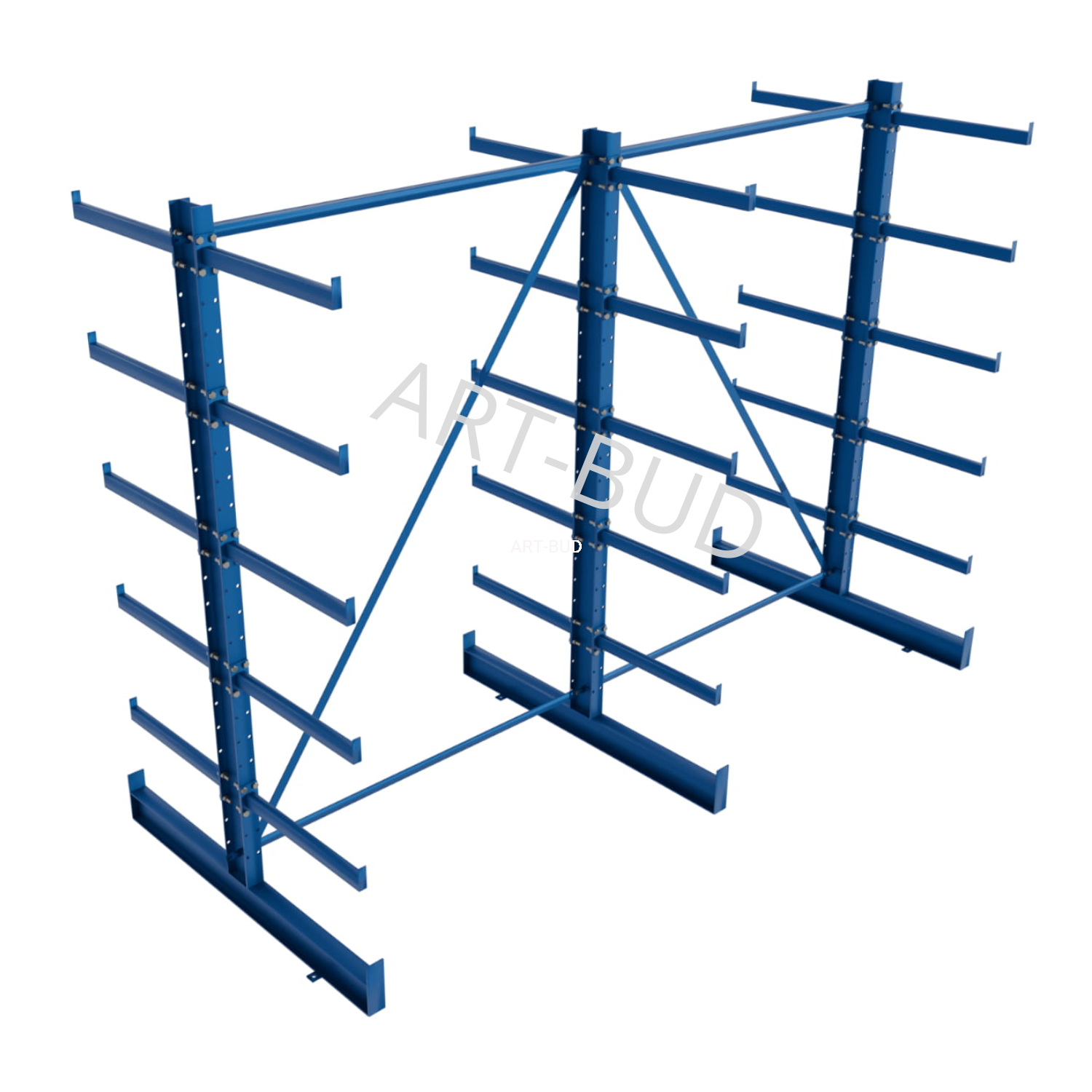 Regulowany spawany regał wspornikowy - równoramienny, dwustronny, 2000x2700x1180mm