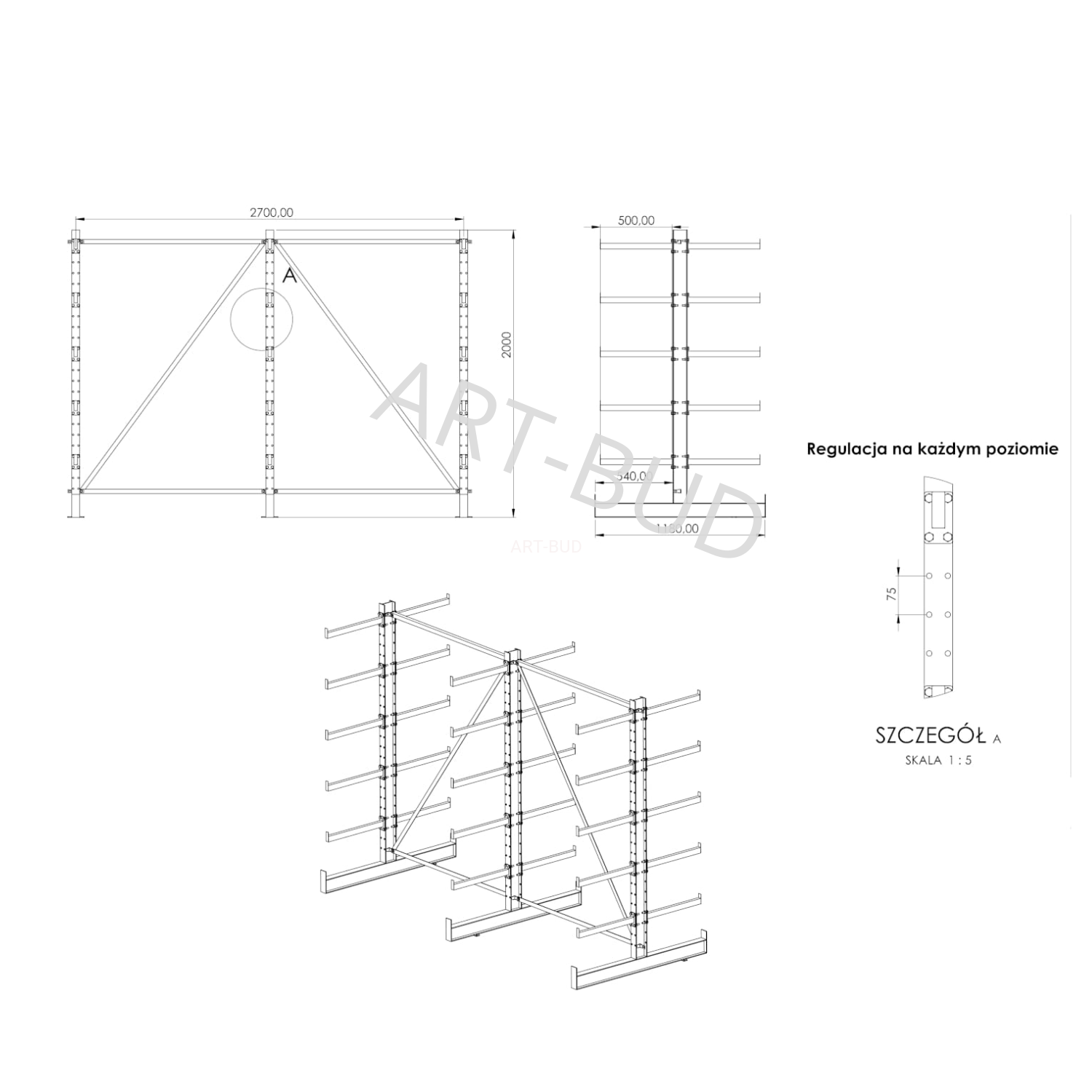 - wsporniki mają ograniczniki zabezpieczające przed wypadnięciem magazynowanego materiału