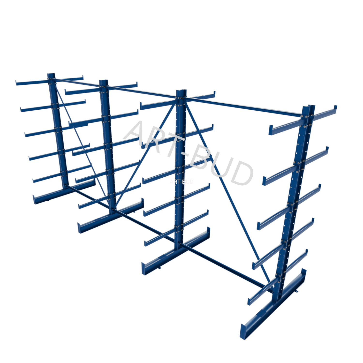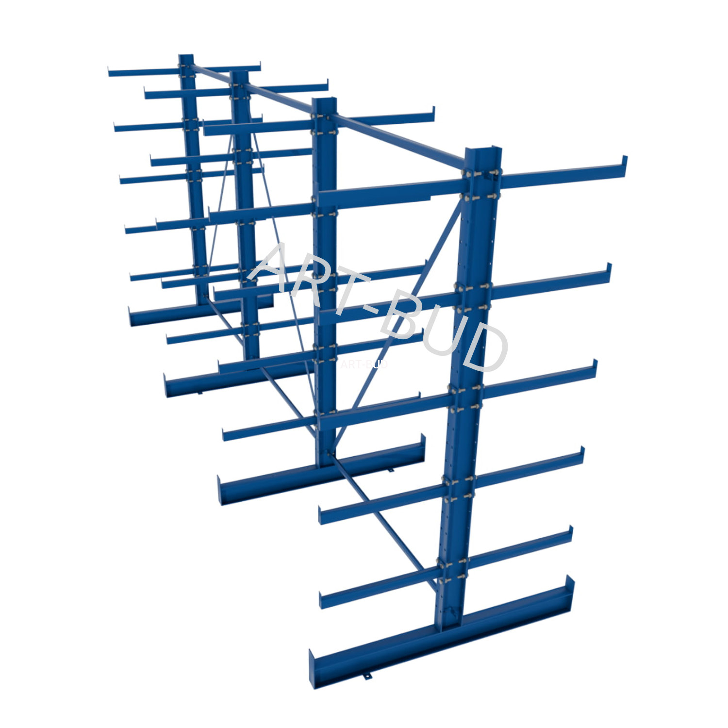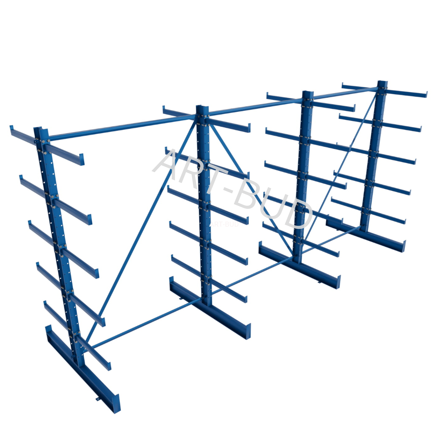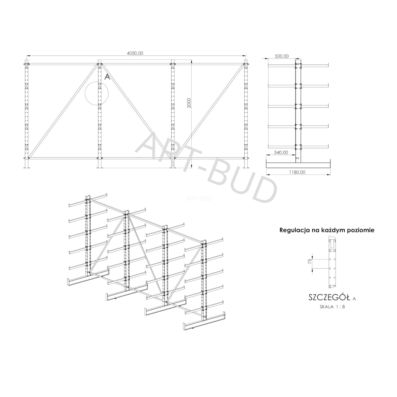 Regulowany spawany regał wspornikowy - równoramienny, dwustronny, 2000x4050x1180mm