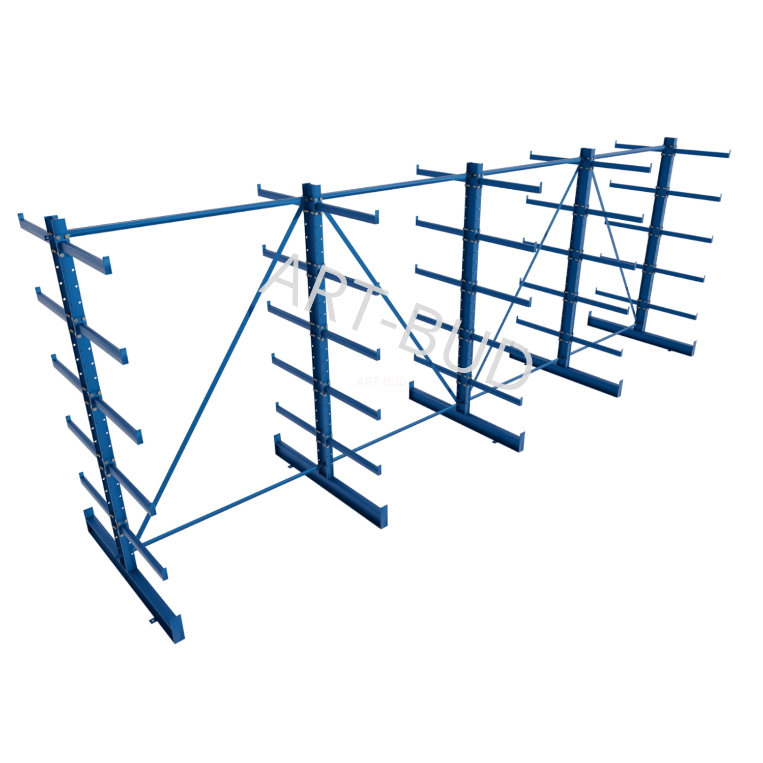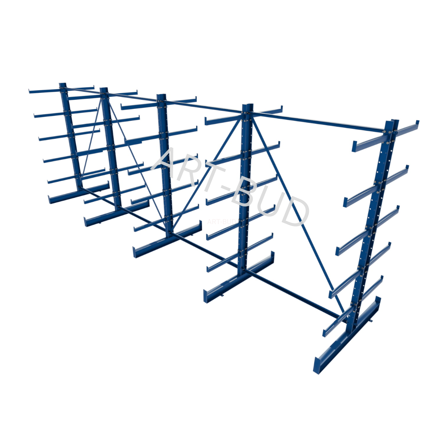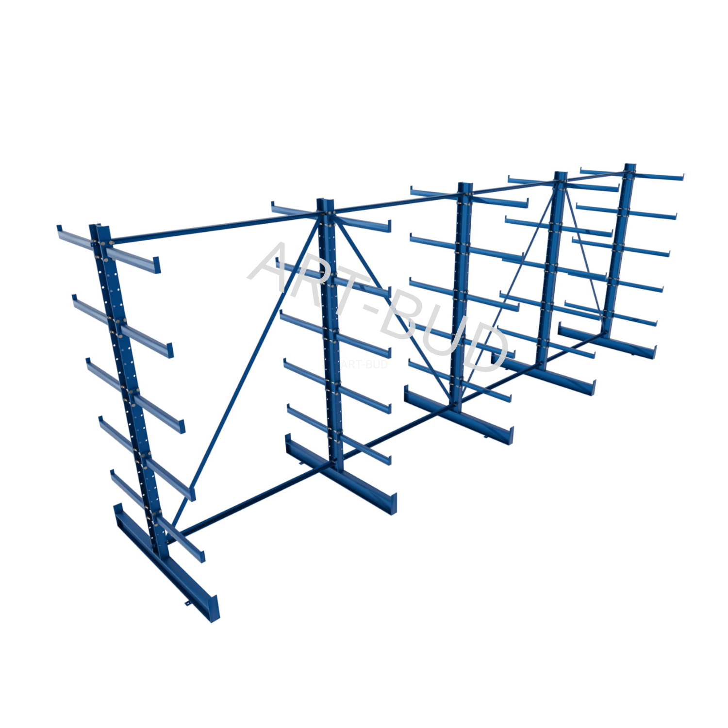 Regulowany spawany regał wspornikowy - równoramienny, dwustronny, 2000x5400x1180mm (1)