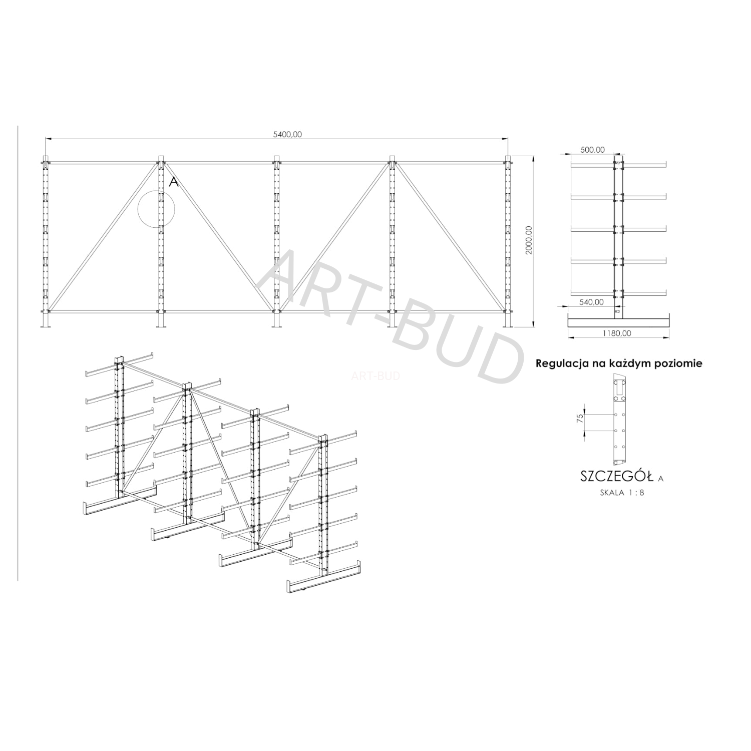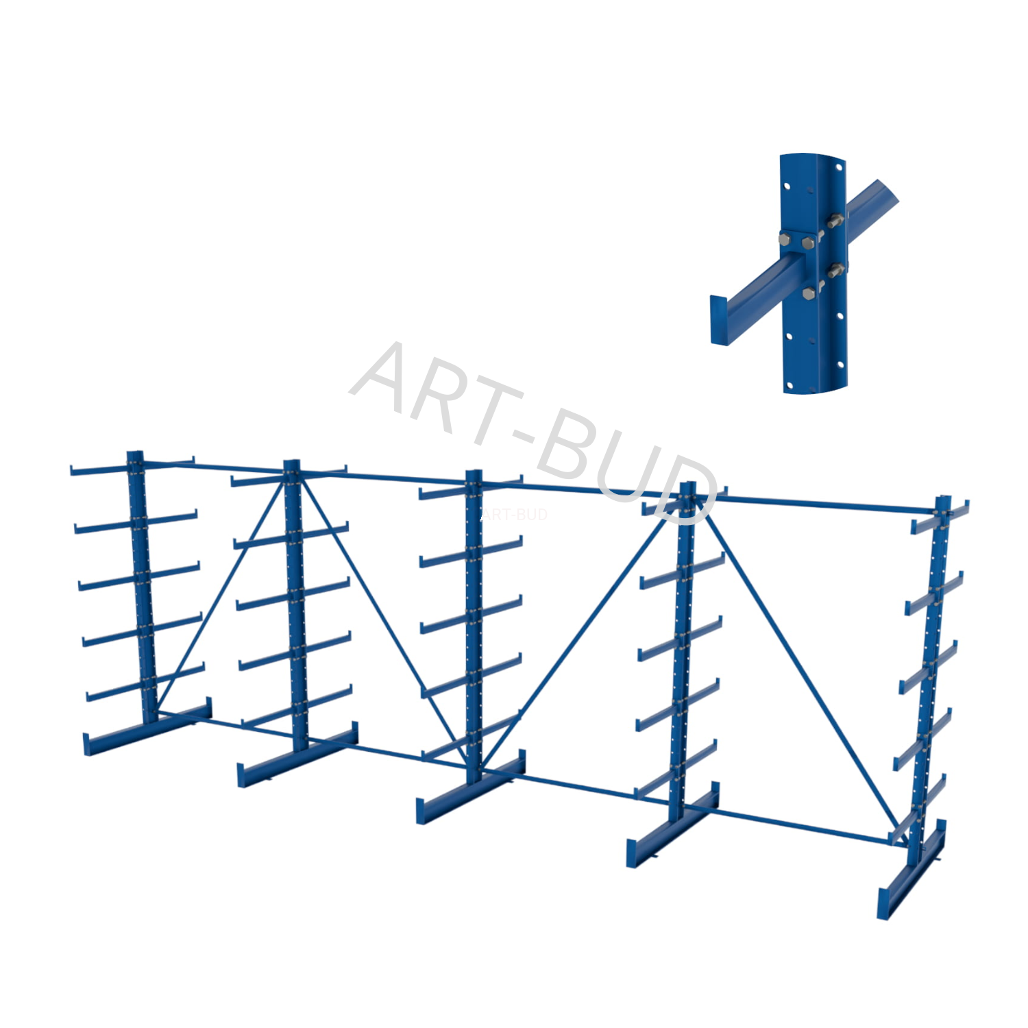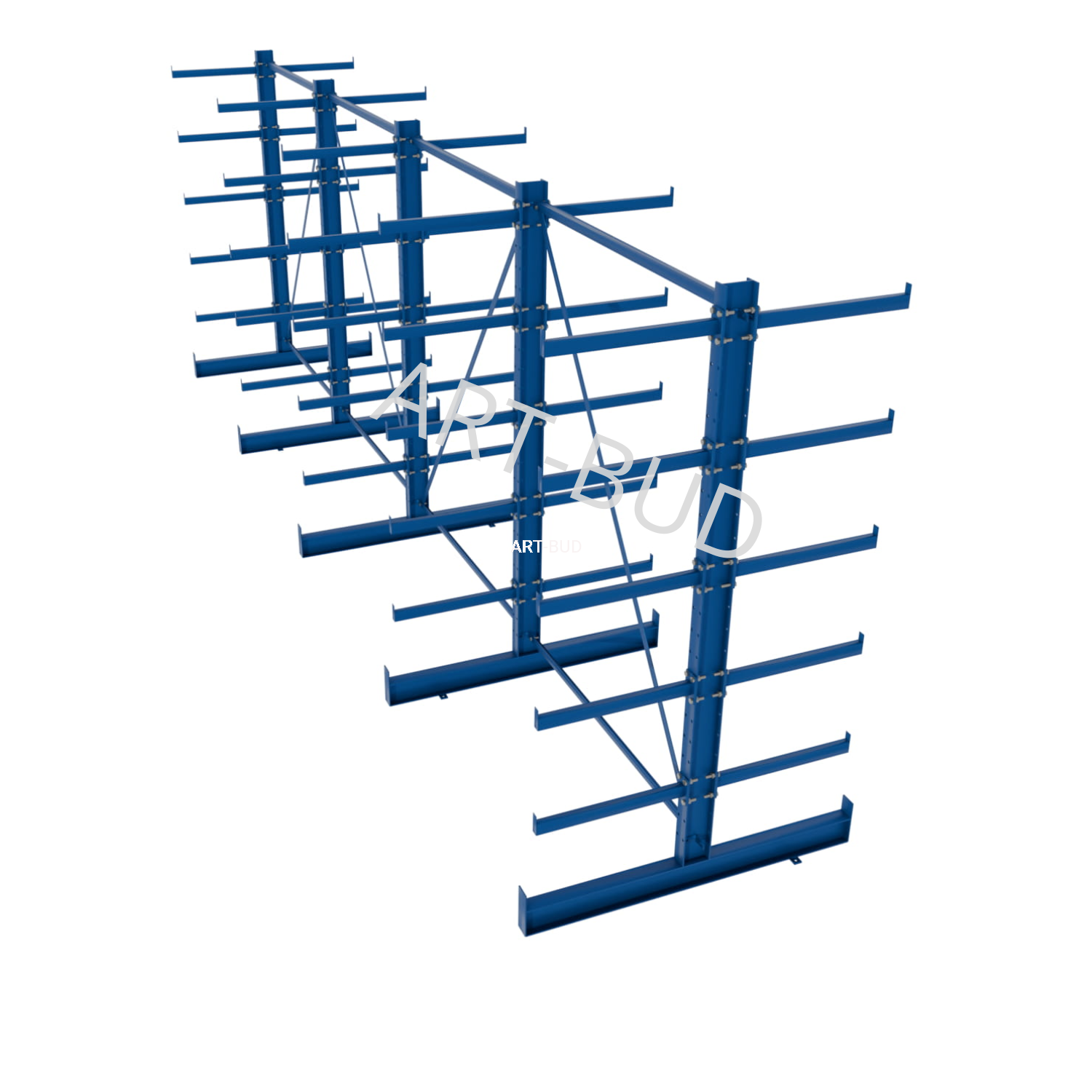 Regulowany spawany regał wspornikowy - równoramienny, dwustronny, 2000x5400x1180mm (1)