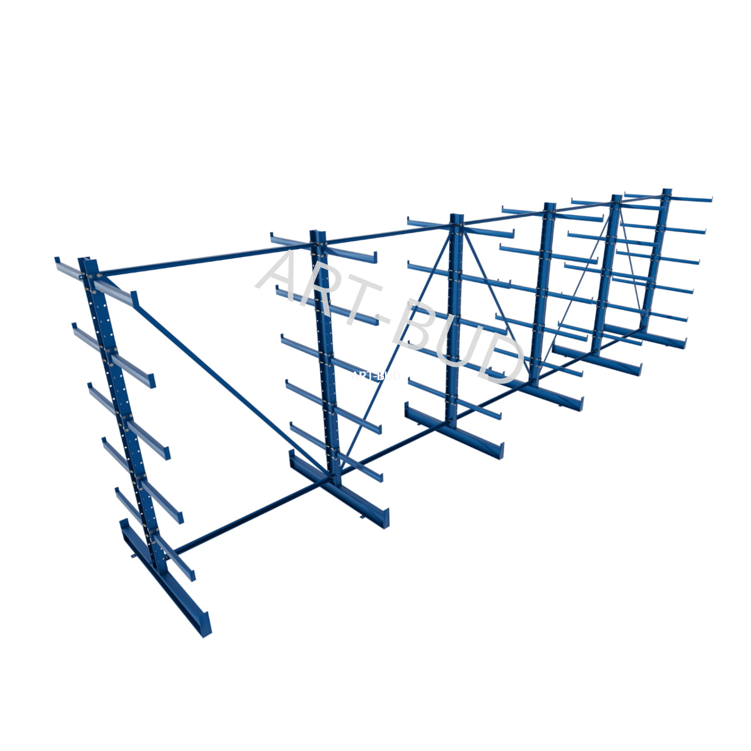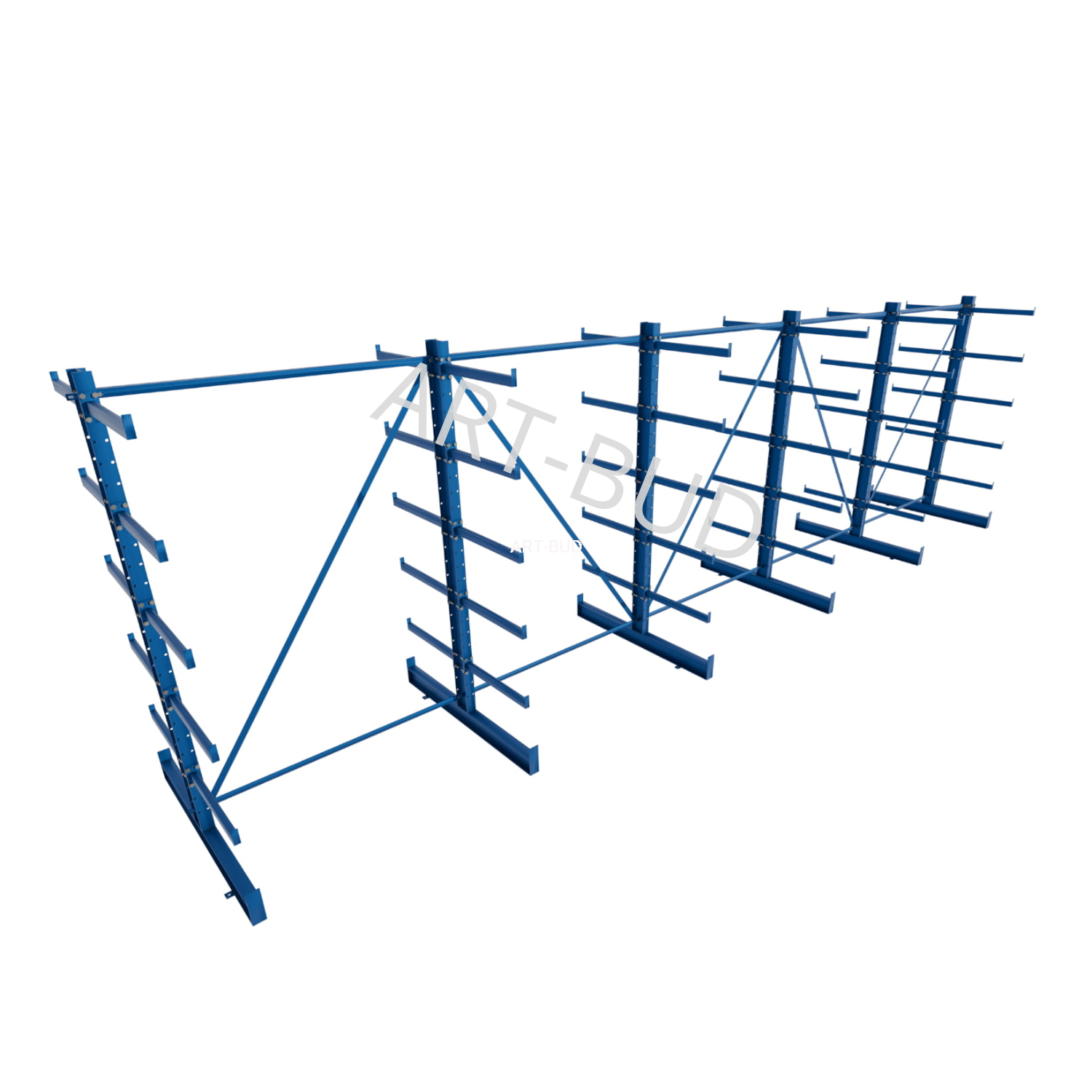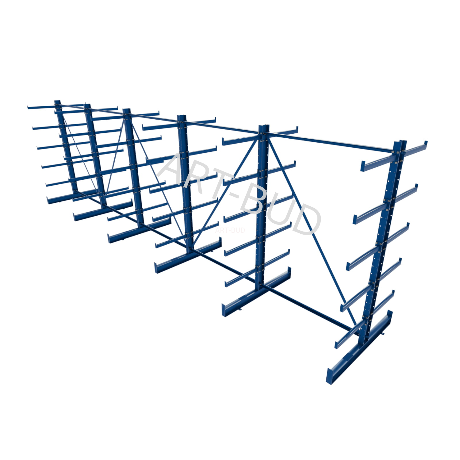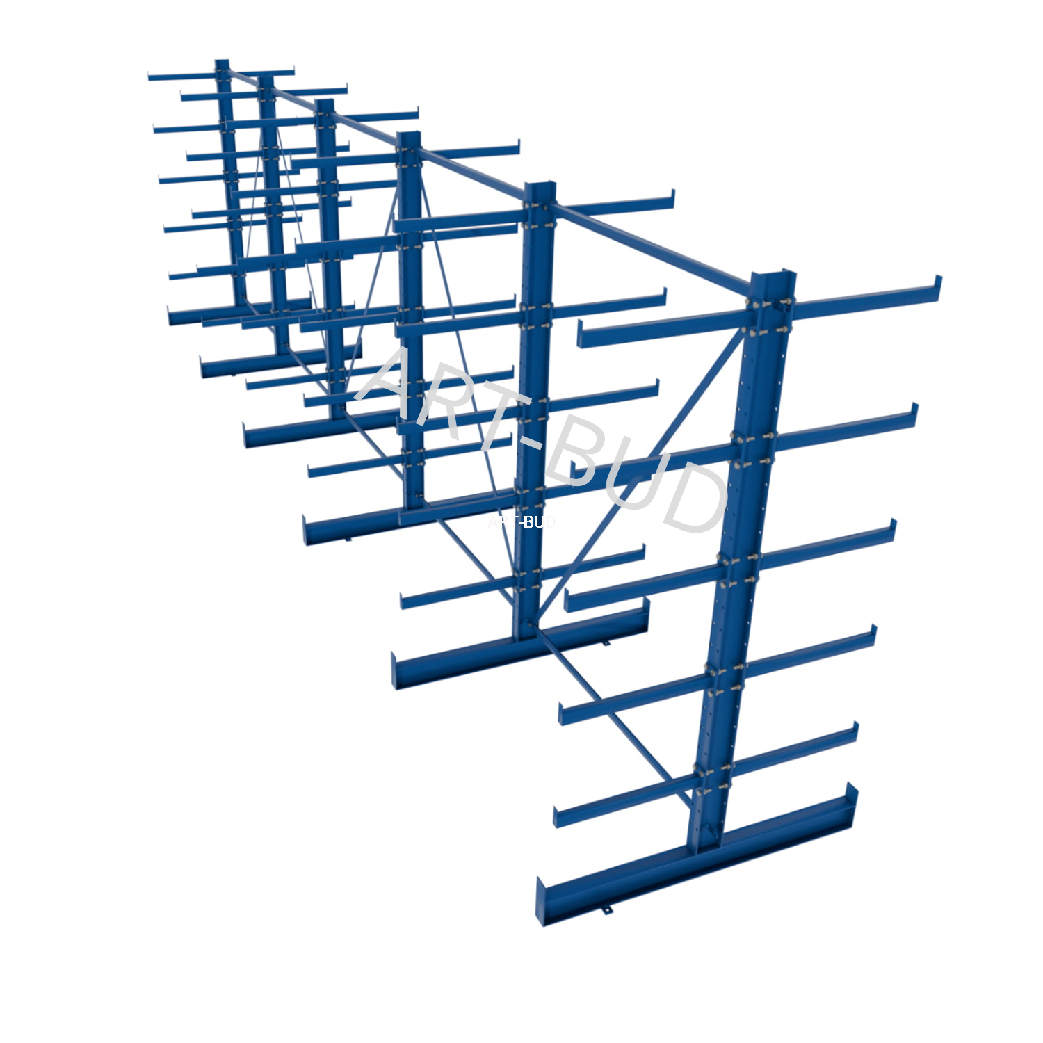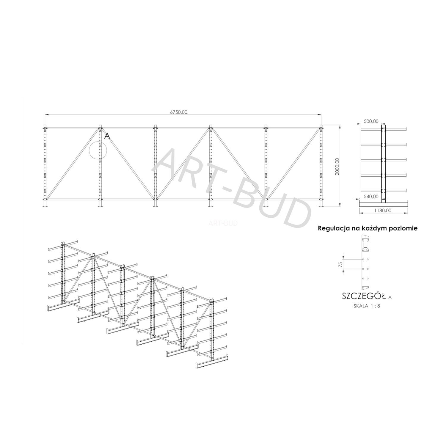 Regulowany spawany regał wspornikowy - równoramienny, dwustronny, 2000x6750x1180mm