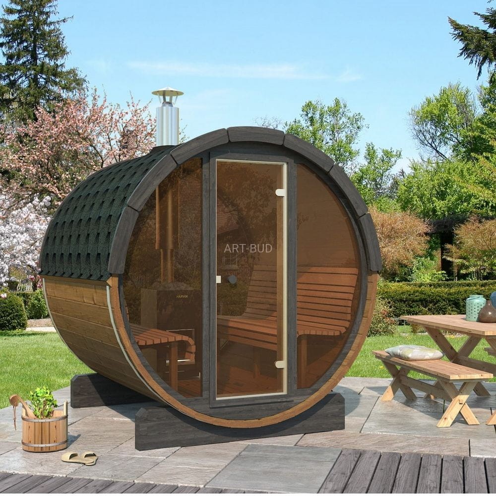 Zewnętrza sauna fińska Lux Barrelsauna to konstrukcja wykonana w kształcie beczki. Drewno świerkowe, z którego została wykonana sauna charakteryzuje się niską zawartością żywicy i dużą wytrzymałością na wysokie tempetatury. Jest to materiał, który najczęściej wykorzystywany jest do budowy saun fińskich. Niebanalny design sauny sprawi, że Twój ogród będzie prezentował się wyjątkowo, a regularne korzystanie z sauny wpłynie pozytywnie na Twoje zdrowie fizyczne i psychiczne.