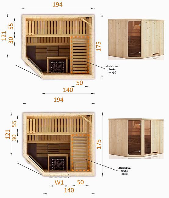 Sauna narożna fińska wewnętrzna Family 2018EWO i 2018EW1