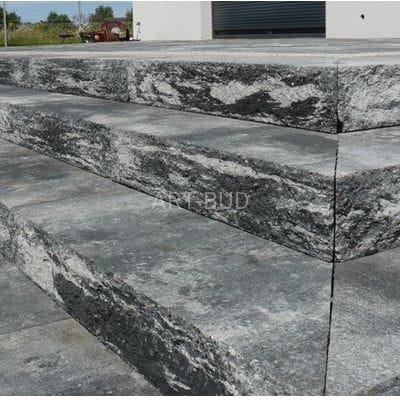 Stopnie schodowe ogrodowe z łupanego betonu, gr 15 cm to system monolitycznych bloków schodowych z barwionego w masie specjalistycznego betonu.