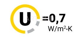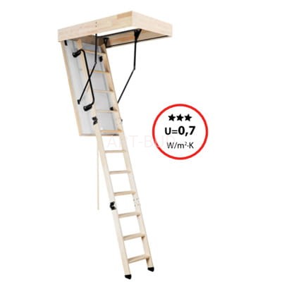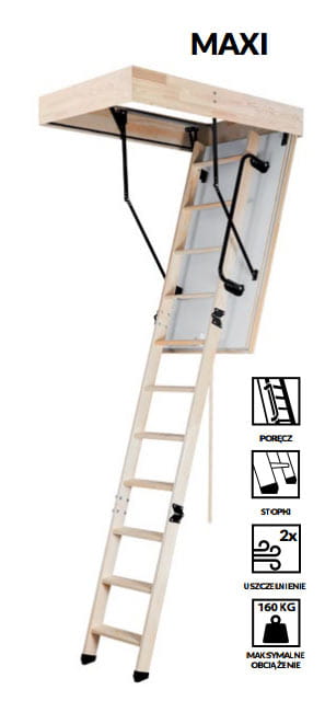 Schody strychowe MAXI posiadają podwójnie uszczelnioną klapę o grubości 56 mm, dzięki czemu współczynnik przenikania ciepła wynosi 0,7 W/m2*K.