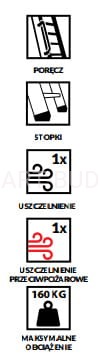 Dla zwiększenia bezpieczeństwa schody EI45 zostały wyposażone w poręcz, ułatwiającą wejście, oraz w antypoślizgowe stopki.