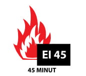 Zastosowane uszczelnienie przeciwpożarowe, gwarantuje odporność ogniową na poziomie EI45.