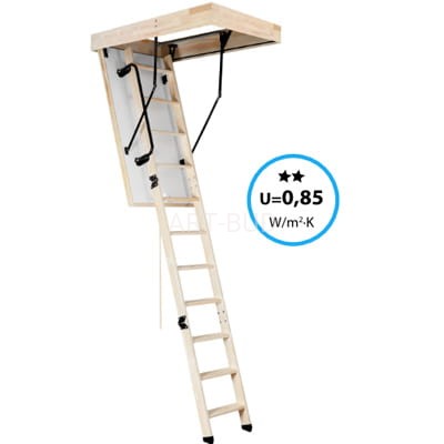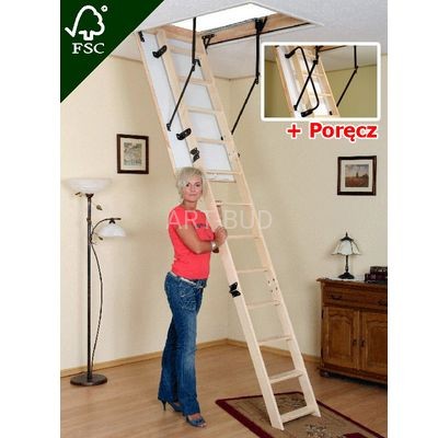 Polecamy wysokiej jakości składane, drewniane schody strychowe Dzięki wysokiej jakości drewna i ich estetyce schody tego typu pasują niemal do każdego rodzaju wnętrza. Poprzez zastosowanie schodów dostanie się na strych lub poddasze domu będzie dla państwa o wiele łatwiejsze. Szczególną zaleta jest ich składana forma i możliwość ukrycia złożonych schodów w suficie, co zapewnia dużą oszczędność miejsca w pomieszczeniu. Idealny produkt dla klientów wymagających niskiej ceny , wysokiej jakości wykonania i funkcjonalności. Schody strychowe z dobrze ocieplaną klapą o współczynniku 0,85 W/m2*K. W standardzie antypoślizgowe stopki ułatwiające montaż oraz w poręcz poprawiającą bezpieczeństwo.
