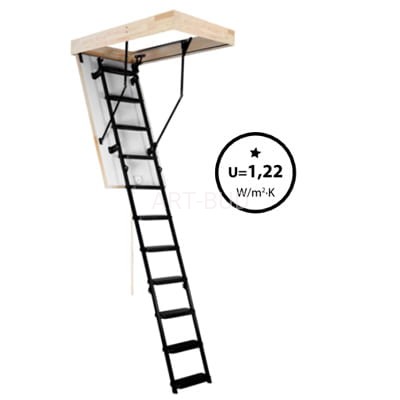 Najwyższej jakości schody strychowe stalowo-drewniane składane wraz z klapą dociskową na sprężynach . Dwanaście wymiarów w jednej standardowej cenie . Doskonale ocieplone , bezpieczne , nowoczesne .Schody strychowe SOLID z ocieplaną klapą o współczynniku 1,22 W/m2*K. Wytrzymałe na obciążenie 190 kg. W standardzie wyposażone w antypoślizgowe stopki ułatwiające montaż.